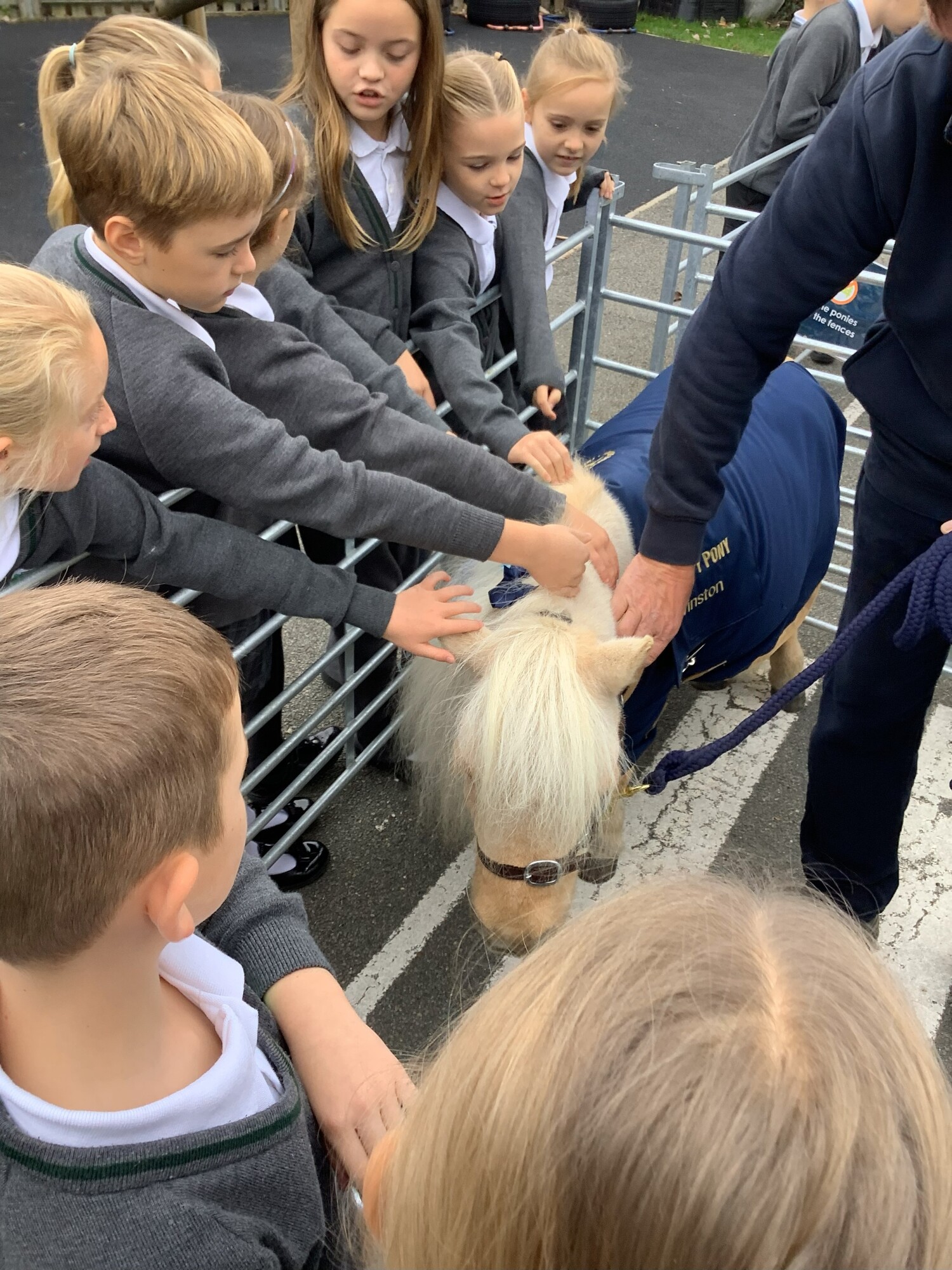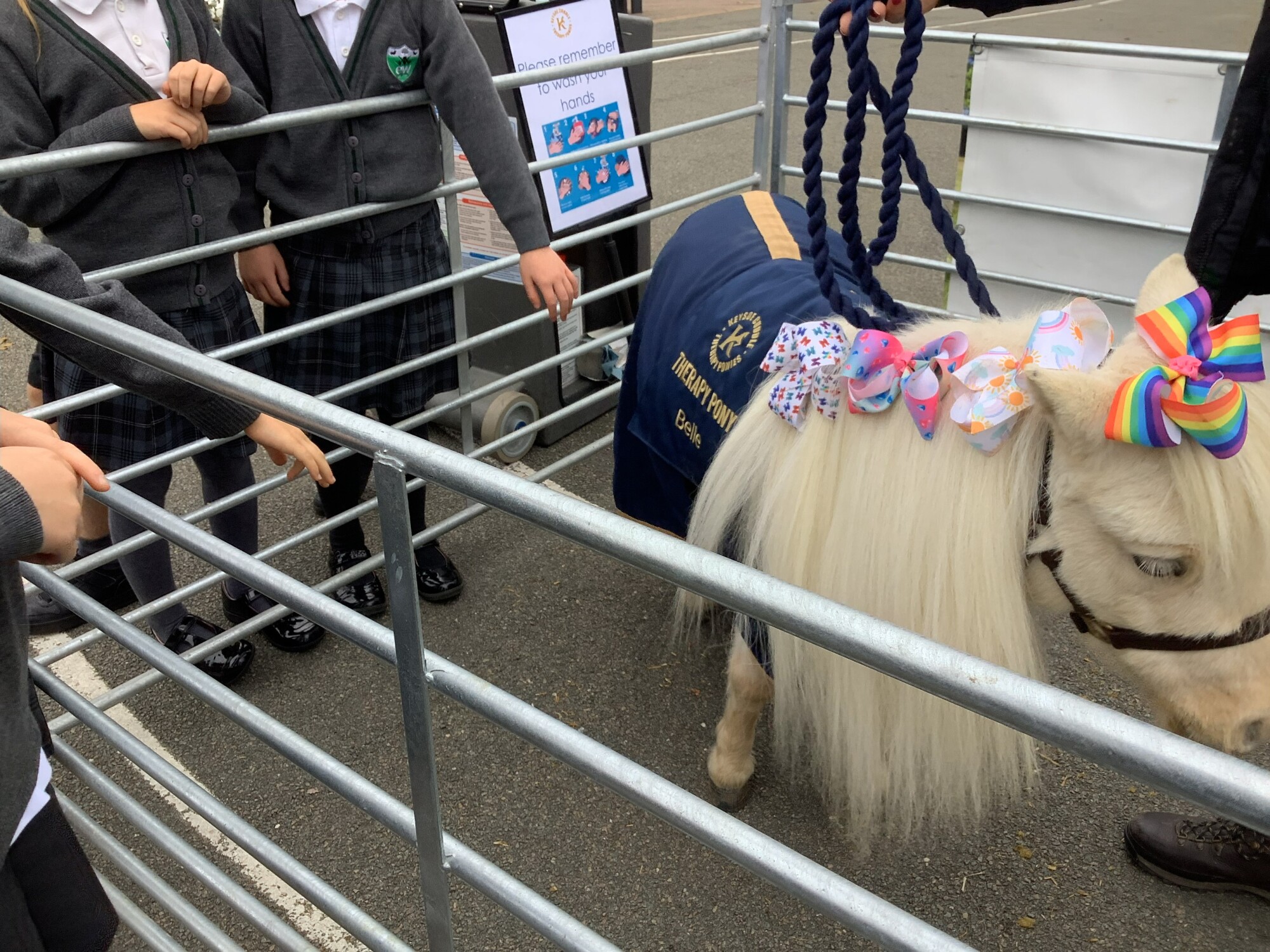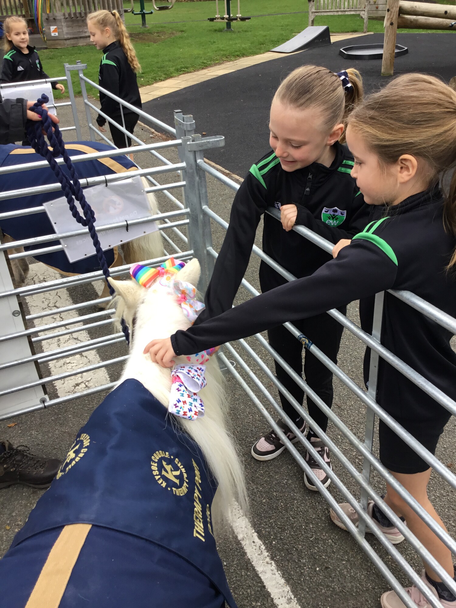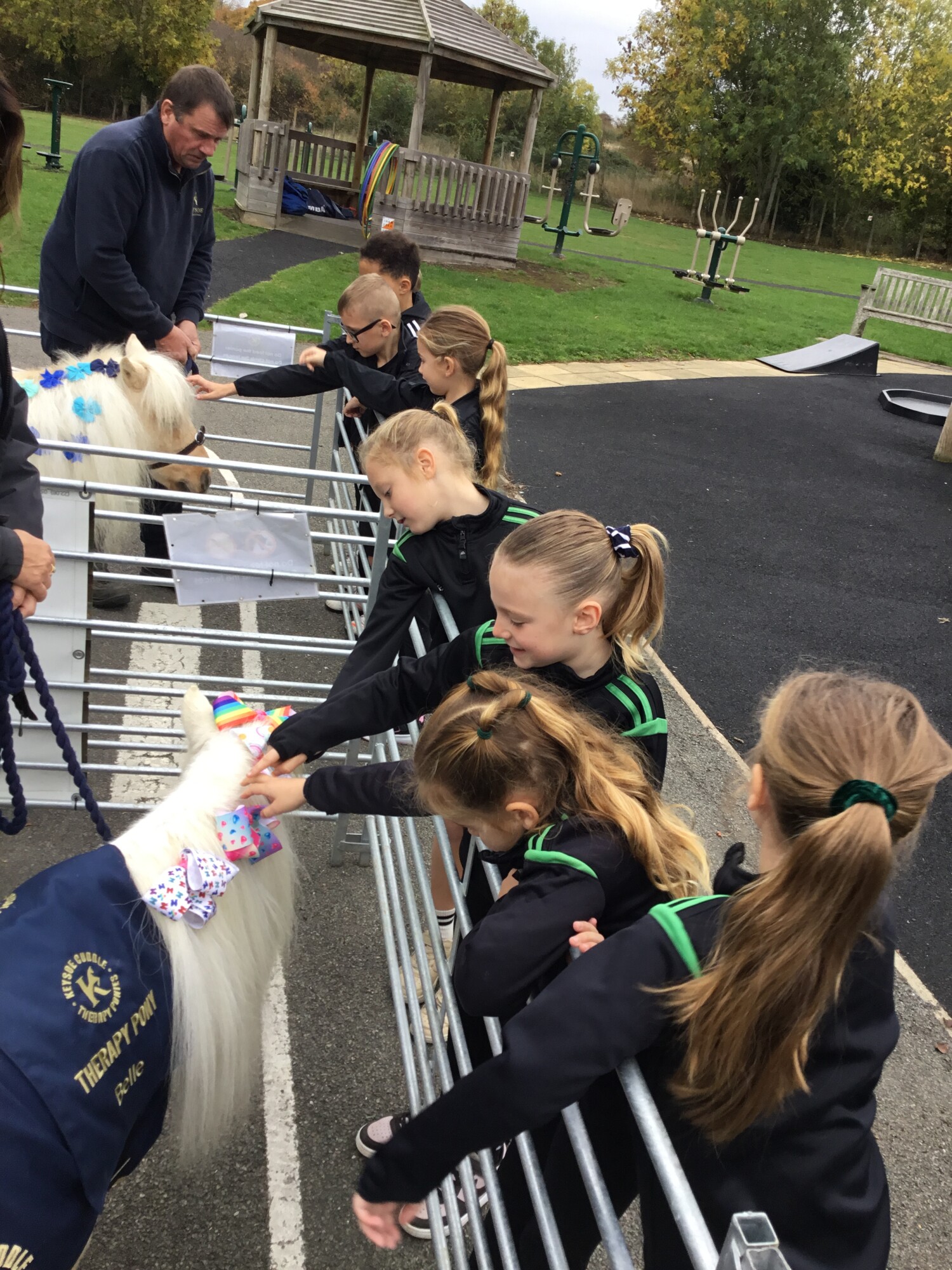 The school were visited by a couple of therapy ponies from Keysoe. The gentle animals are trained to provide emotional supportand a sense of wellbeing. The children visited them in groups and were able to stroke the ponies.