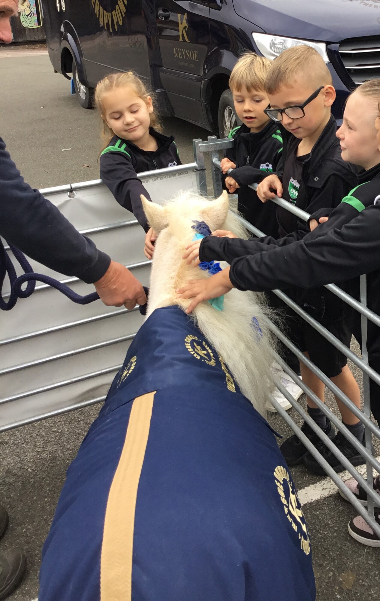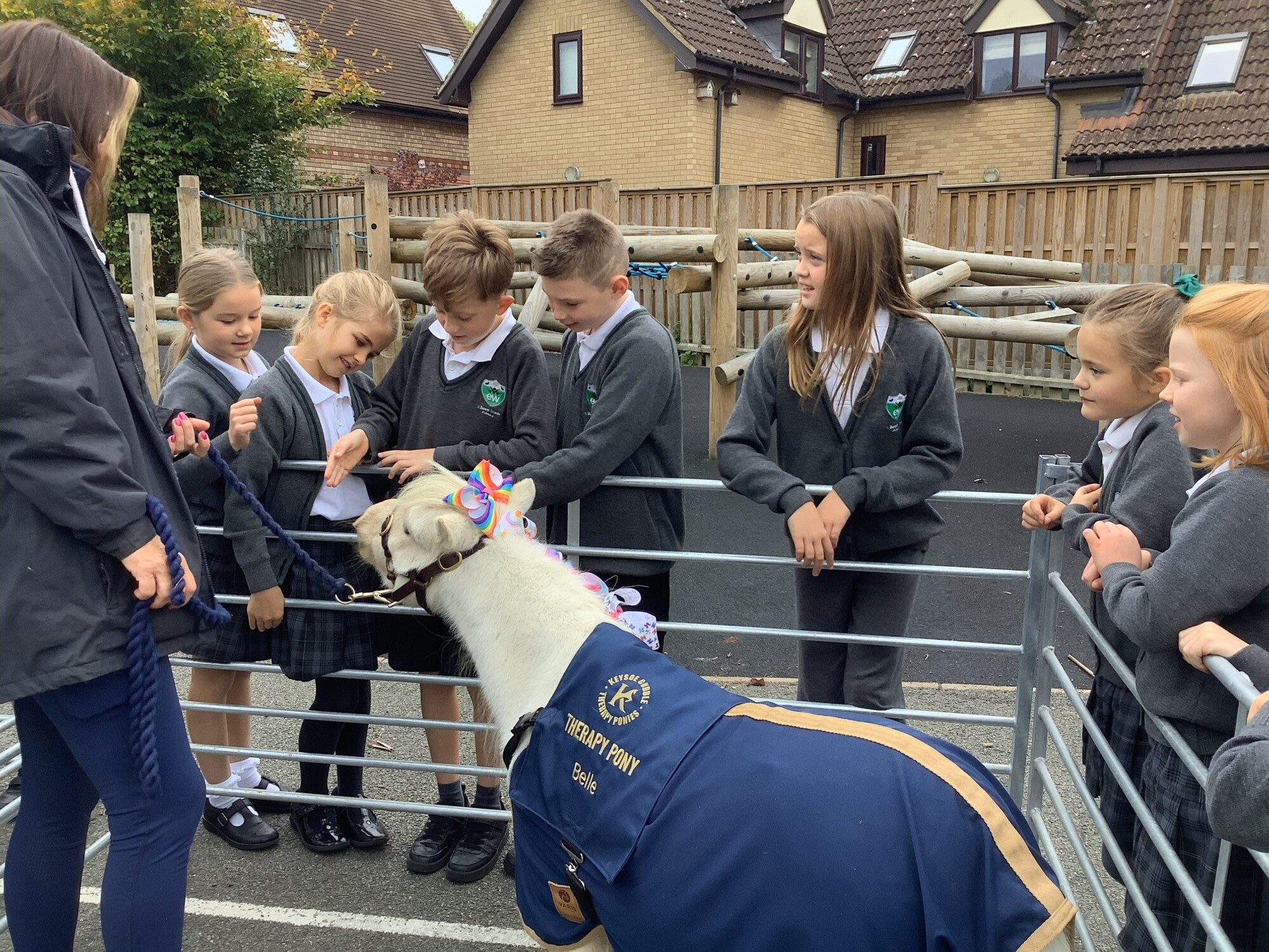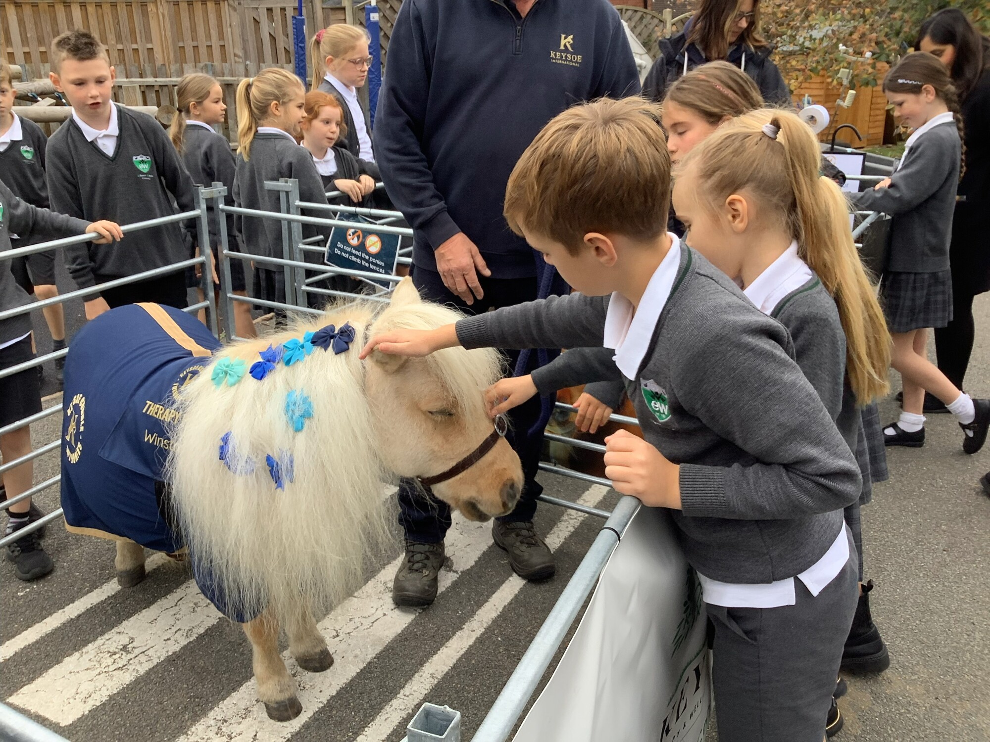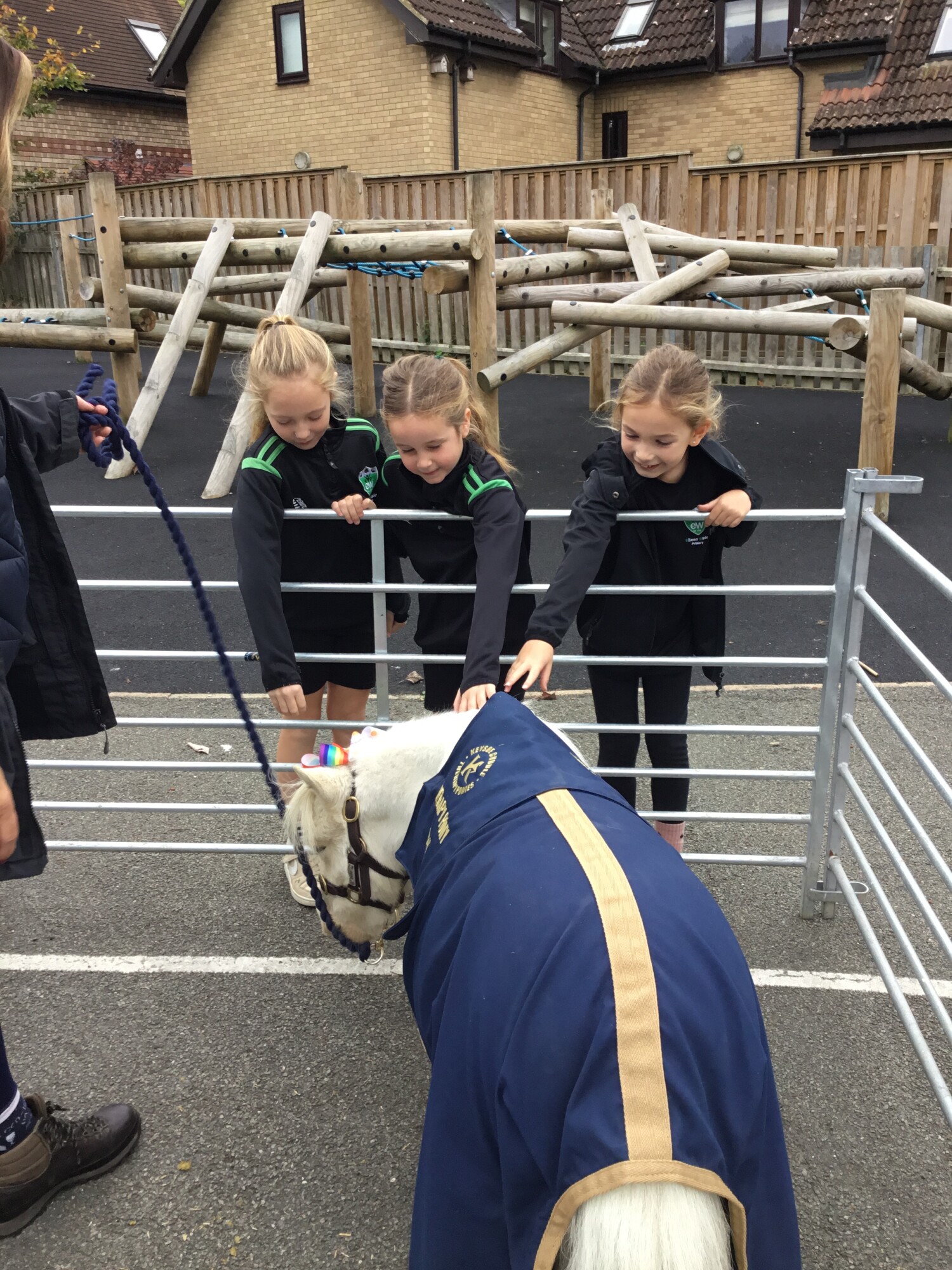 The school were visited by a couple of therapy ponies from Keysoe. The gentle animals are trained to provide emotional supportand a sense of wellbeing. The children visited them in groups and were able to stroke the ponies.